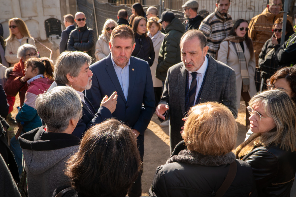 El conseller de justícia i qualitat democràtica de la Generalitat de Catalunya, Ramon Espadaler, visita la intervenció arqueològica a la fossa comuna del Cementiri Vell amb autoritats municipals i familiars de les persones afusellades el 1939