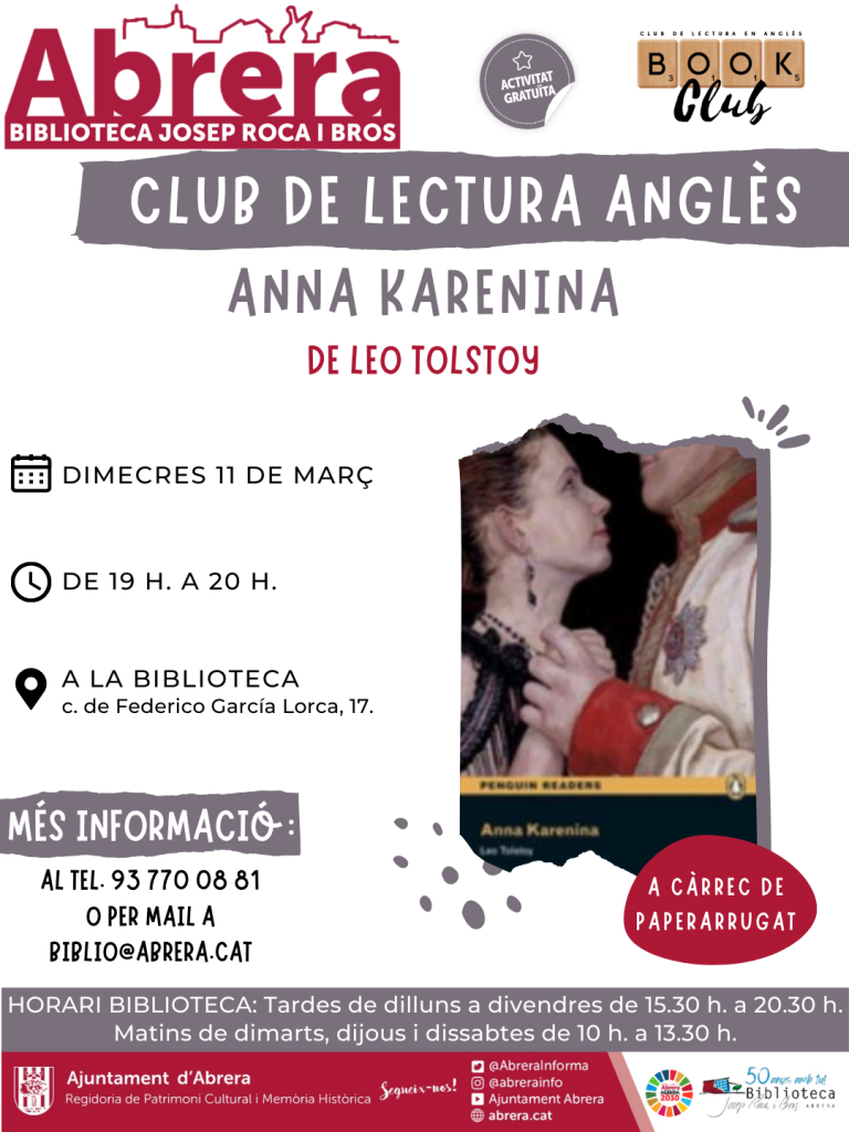 Biblioteca Josep Roca i Bros: Club de Lectura anglès: Anna Karenina