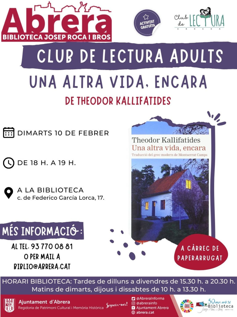CLUB DE LECTURA D’ADULTS: ‘UNA ALTRA VIDA, ENCARA’
