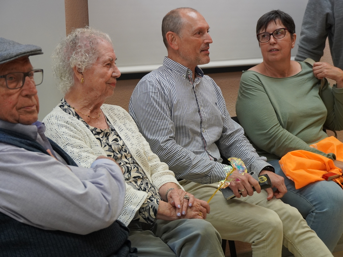 • Maria José Orobitg: "Primer de tot volia dir-vos feliç diada amb aquest dia assolellat. També volia agrair a l’Ajuntament aquests quasi deu anys i m’alegro molt que s’hagi mantingut aquesta festa al llarg del temps. L’últim llibre que tinc publicat és La iaia no és la mateixa, que mostra, a través dels ulls d’una nena, l’evolució de la seva àvia amb Alzheimer, amb una mirada poètica. L'original era en castellà, però aquí el que porto és l'edició en català i el que mostra el llibre és una mirada a través dels ulls d'una nena l'evolució de la seva iaia els seus records d'infantesa de com era la iaia i quan arriba un moment que aquesta iaia no se'n recorda de les coses, no reconeix la gent deixa les coses on no toquen, diu que li han robat els diners ja sabem que la malaltia de l'Alzheimer va portant amb un crescendo de pèrdua del que és la memòria i ho fa amb una mirada poètica no és pedagògic, sinó que és mostrar aquesta malaltia a través de la relació de l'àvia i de la nena i la mirada poètica no s'ha d'oblidar mai tampoc com la memòria històrica de reconèixer qui érem, qui som i agrair als pares i als ancestres el fet que estiguem aquí i és un homenatge cap a ells. L’altre llibre és un poemari amb humor, jugant amb paraules i situacions quotidianes".