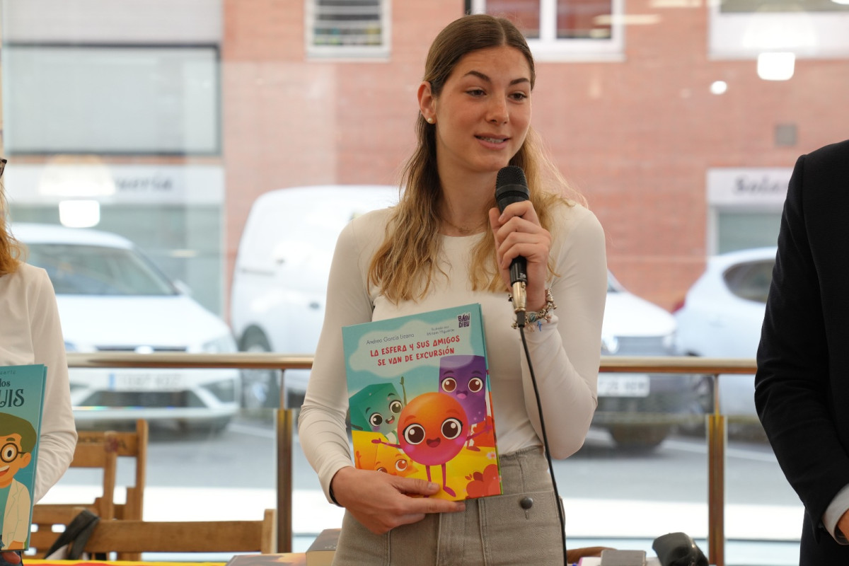 • Andrea García: "Soc autora de l’àlbum il·lustrat, una història molt divertida dels cossos geomètrics. Agrair a l’Ajuntament d’Abrera i a la Biblioteca per donar-me la segona oportunitat d’estar aquí, un segon any, i convidar els infants que vinguin a veure el llibre, que és molt xulo, molt interessant, molt divertit, i els permet treballar la geometria d’una forma molt divertida, i que ha sortit superbé, que segur que així serà. Molt contenta perquè sé que l’Ajuntament i la Biblioteca compten amb mi, que això em fa sentir molt bé, i poder arribar a més famílies, a més nens que coneguin aquest conte".