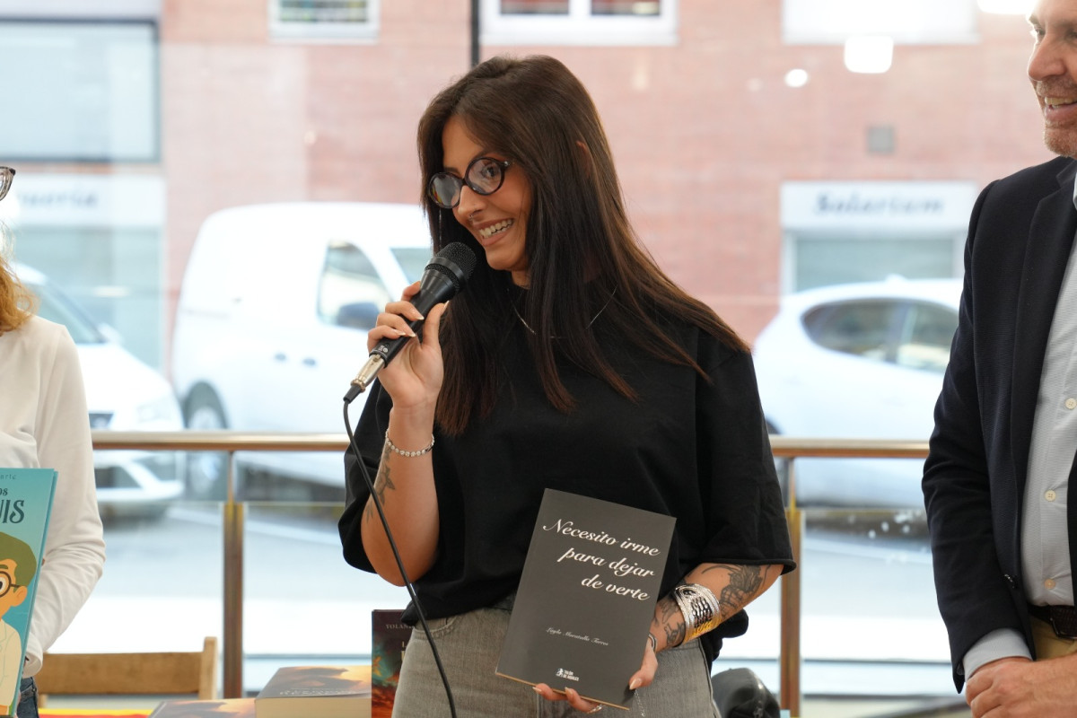 • Laila Morataya: "Soy Laila Morataya y vengo a la parada de los libros para presentar mi primer poemario, Necesito irme para dejar de verte. En primer lugar, quiero agradecer al ayuntamiento y a la biblioteca por darme la oportunidad de estar aquí por primer año, estoy súper contenta. En este poemario, que nace desde una ruptura, una relación y una ira que transcurre, menciono las cinco etapas emocionales que podemos sentir todos. Necesito irme para dejar de verte es un poemario crudo, íntimo y contradictorio. Habla del sexo, del dolor, de la rabia, del amor y de esas emociones que en realidad todos alguna vez hemos tenido con alguien, por alguien o incluso por nosotros mismos. En este poemario no hay moraleja, no hay una superación, simplemente es como una mujer que escribe para no explotar y por no morir, básicamente".