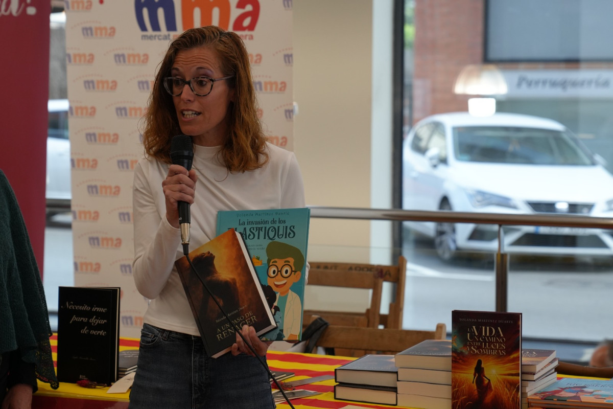 • Verónica Martínez (germana de la Yolanda Martínez Duarte): "Vinc representant la meva germana Yolanda, que és l'escriptora d'aquesta col·lecció de contes infantils que portem sobre Julen i Mariona, que són dos germans que van d'aventura en aventura, des de l'illa Rikerslendur, passant pel castell abandonat de Riptur, i l'últim estrenament en col·lecció infantil és la invasió dels Plastiquis, que està dedicada una miqueta al reciclatge i al compte del medi ambient. Como ya sabemos, los cuentos de Yolanda traen muchos valores y transmiten muchísimo a los más pequeños de la casa. Por otro lado, tiene lo que es su escritura para los adultos, que son dos libros de relatos. El primero fue publicado hace un añito, aproximadamente, Un camino entre luces y sombras, que está compuesto por 20 relatos sobre la vida. Estos libros tratan aspectos importantísimos, duros y bonitos de la vida. Y luego, ahora, está también de estreno con A un paso de renacer. Este es más extenso, es más intenso, está llegando muy adentro a las personas y tiene temas muy duros. Muy duros, pero que la gente está cogiendo muy bien, porque al final se sienten identificados. Así que, bueno, espero que Yolanda tenga suerte y vaya abriendo camino".