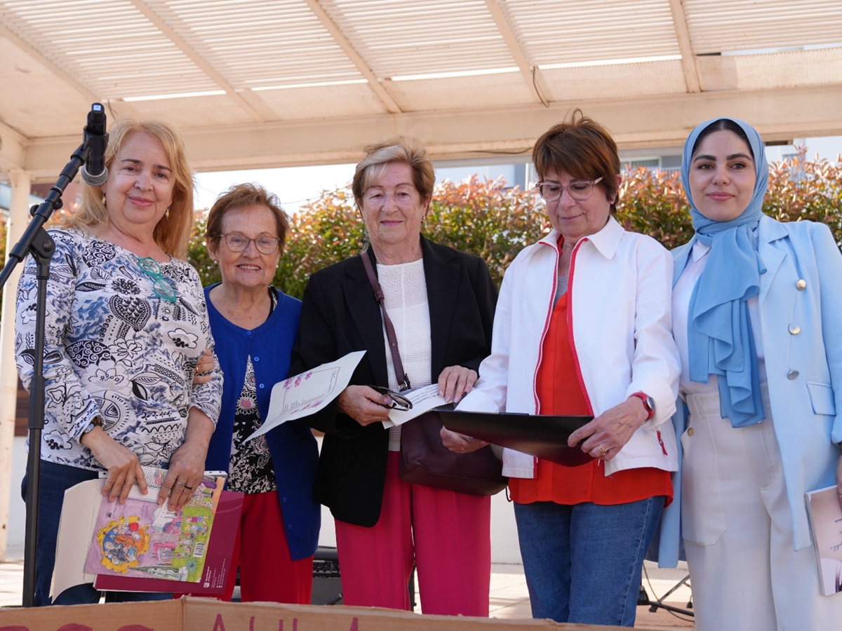 • "Soc la mestra de l’aula d’adults i estic aquí a la plaça Pau Casals amb les meves alumnes, on hem fet lectures compartides. Hem treballat un poema de la poetessa Clementina Arderiu i espero que els hagi agradat".