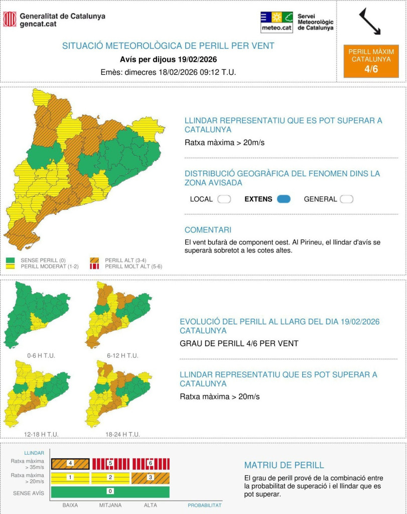 Consells de prevenció davant l'avís de fort vent que pot afectar Abrera aquest dijous 19 de febrer de 2026