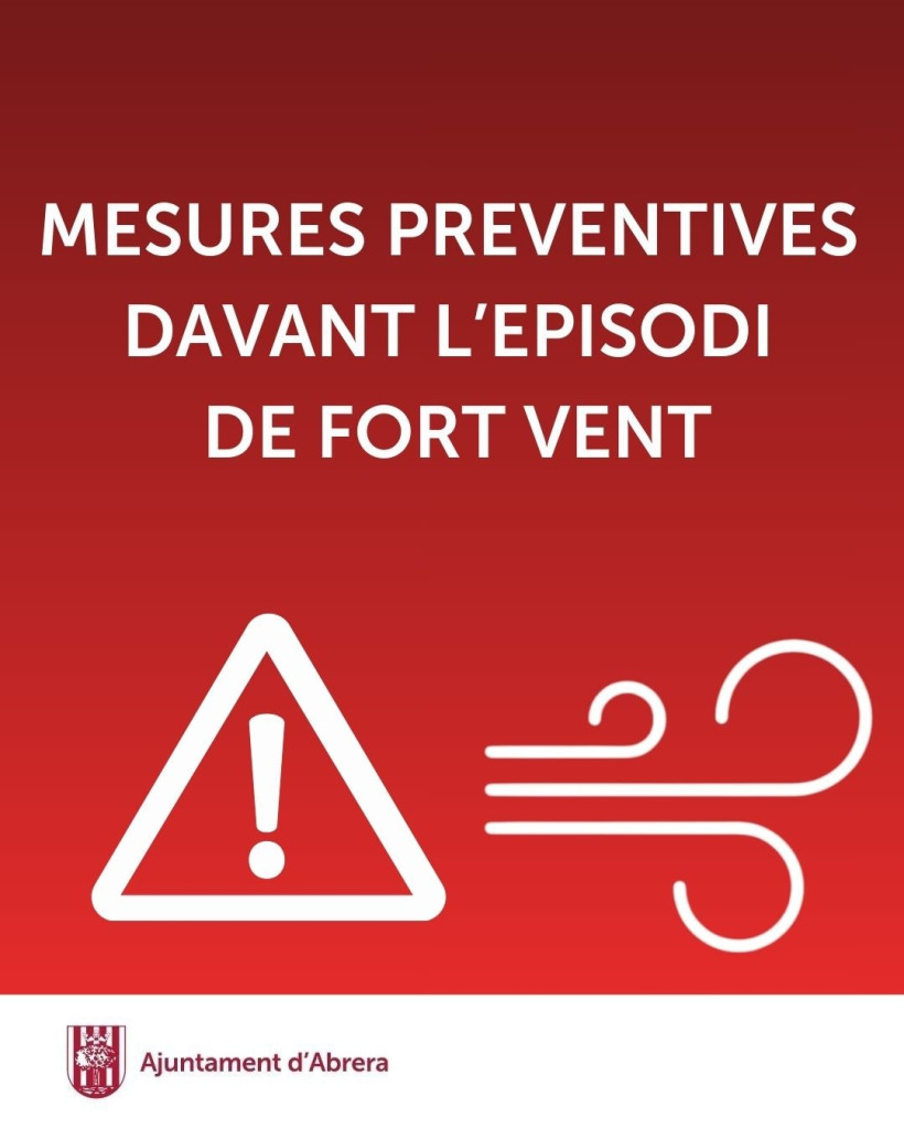 Des de l’Ajuntament d’Abrera demanem que s'extremin les mesures de protecció davant el risc de ventades. Per a qualsevol emergència, s'ha de trucar al T. 112, i també es pot contactar amb la Policia Local d'Abrera al T. 93 770 09 81.