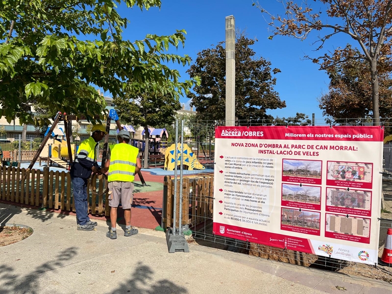A Abrera gaudim dels nostres parcs i espais públics! Des de l’Ajuntament d’Abrera estem duent a terme la instal·lació de veles per a la creació d’ombres, com a refugi climàtic, a la zona de joc infantil del Parc de Can Morral, un dels projectes guanyadors de la darrera edició dels Pressupostos Participatius.