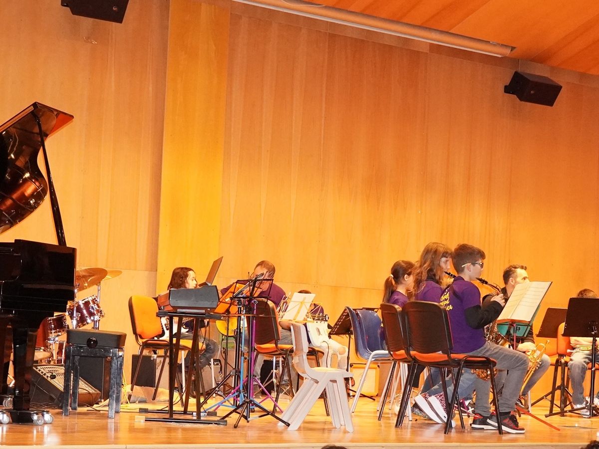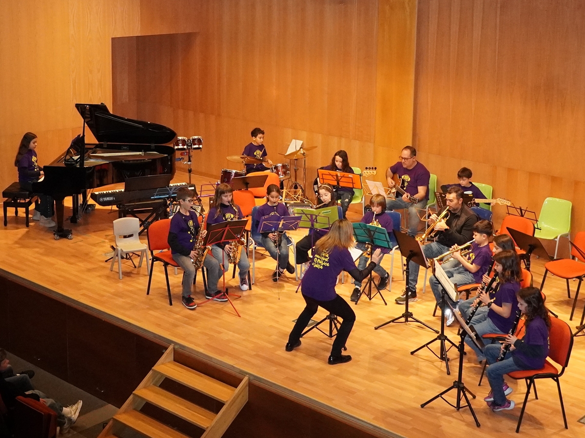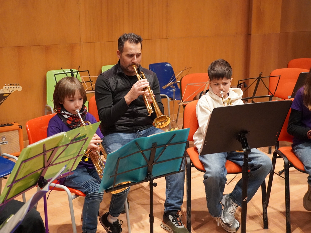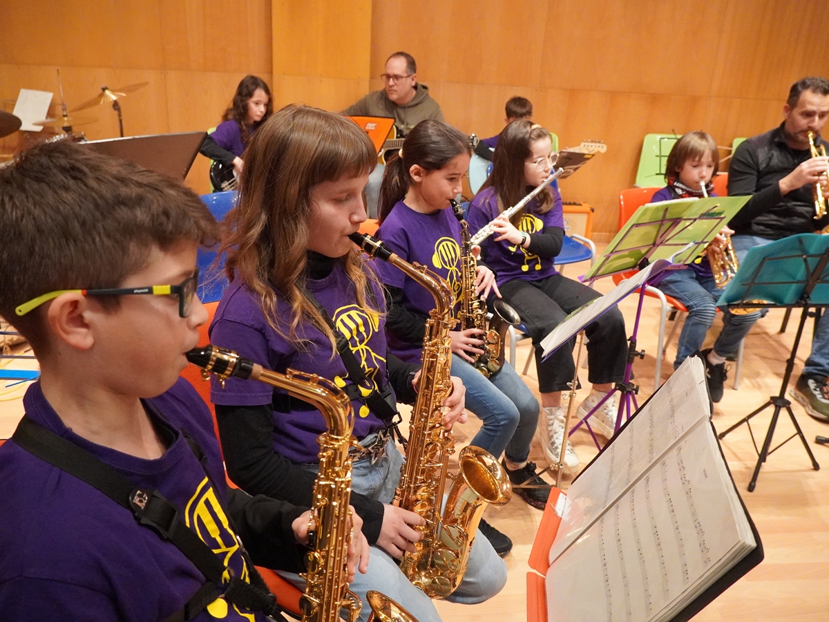 Després d’un matí d’assaig conjunt, els participants van compartir una estona d’esbarjo abans d’oferir el concert final a l’Auditori del Centre Polivalent. La jornada va culminar amb la interpretació de dues peces conjuntes, amb prop de 50 músics tocant plegats damunt l’escenari, en una imatge que simbolitza la força de la música com a eina de cohesió i aprenentatge compartit.