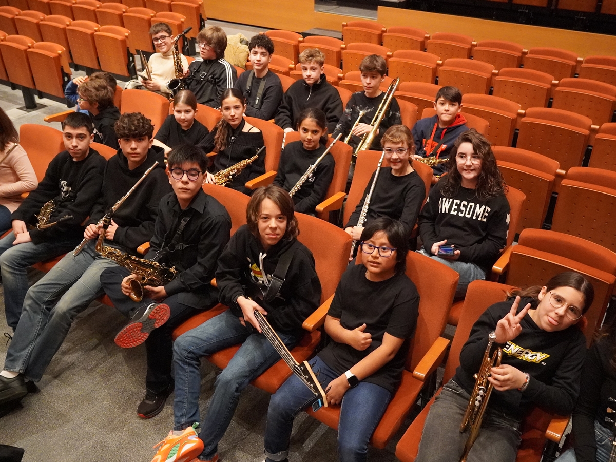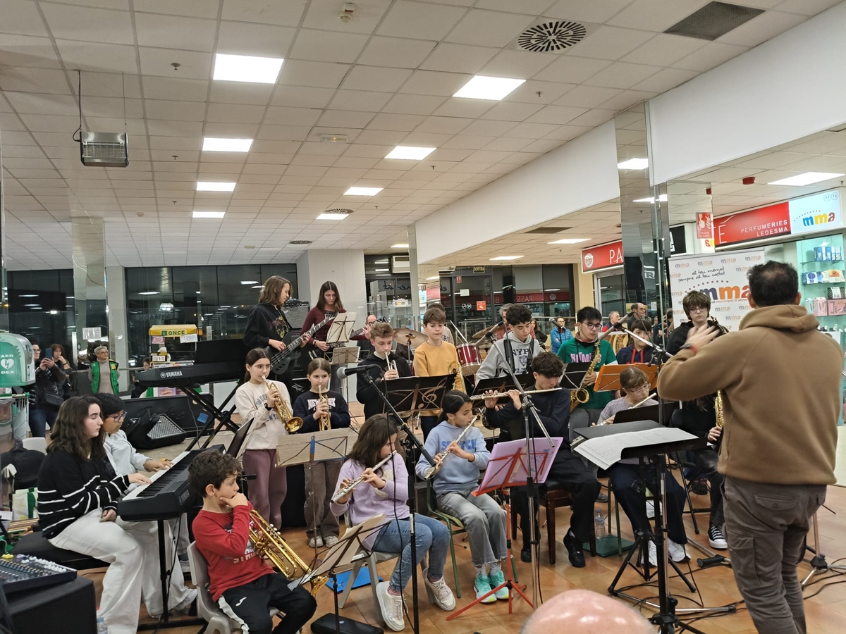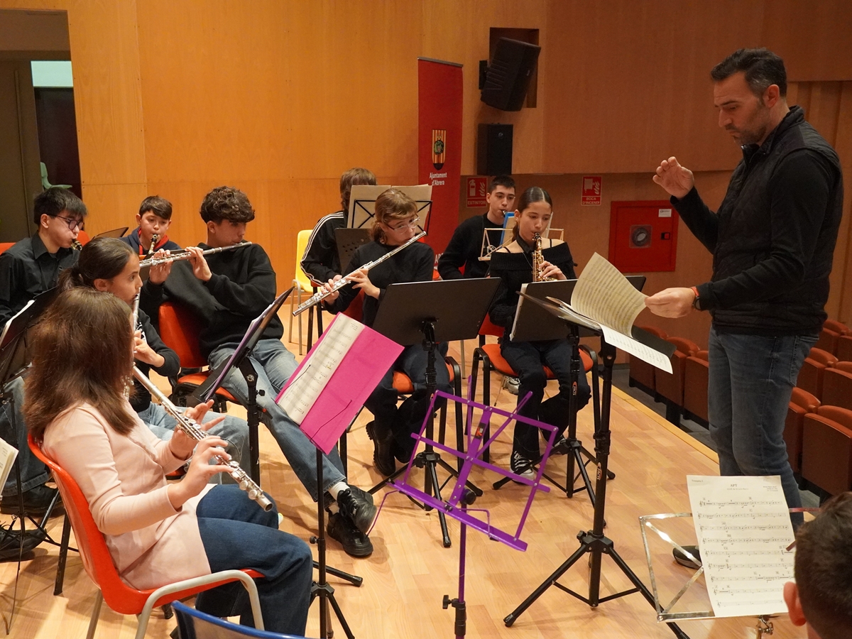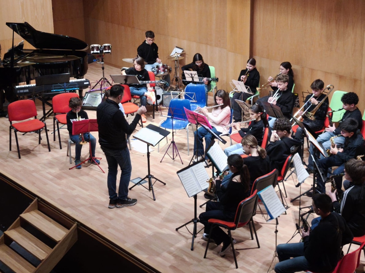 Després d’un matí d’assaig conjunt, els participants van compartir una estona d’esbarjo abans d’oferir el concert final a l’Auditori del Centre Polivalent. La jornada va culminar amb la interpretació de dues peces conjuntes, amb prop de 50 músics tocant plegats damunt l’escenari, en una imatge que simbolitza la força de la música com a eina de cohesió i aprenentatge compartit.