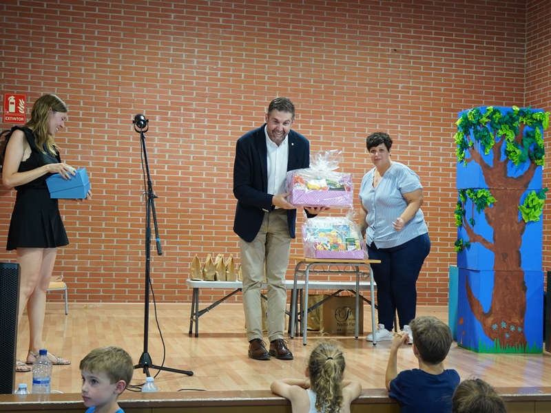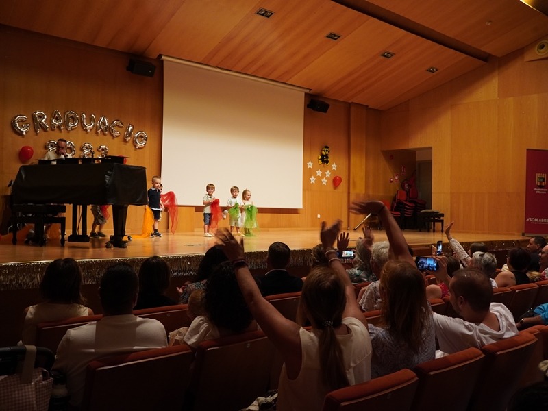 El divendres 7 de juliol passat, els i les alumnes d'I2 de l'Escola Bressol Municipal Món Petit van celebrar el comiat del curs a la Casa de Cultura (Federico Garcia Lorca, 17), amb l'entrega de medalles i diplomes als infants, i també es va dur a terme la festa de final de curs del centre al pati de l'Escola Ernest Lluch, amb un espectacle infantil, i jocs amb piscines petites inflables. L'aigua que es va emprar a l'activitat es va reciclar després regant les zones verdes del mateix recinte. El nostre alcalde, Jesús Naharro, i la regidora Giulia Mirto, van participar en la celebració. L'organització va anar a càrrec de la nova Associació de Famílies (AFA) i de l'equip directiu i docent del centre. Moltes gràcies per convidar-nos!